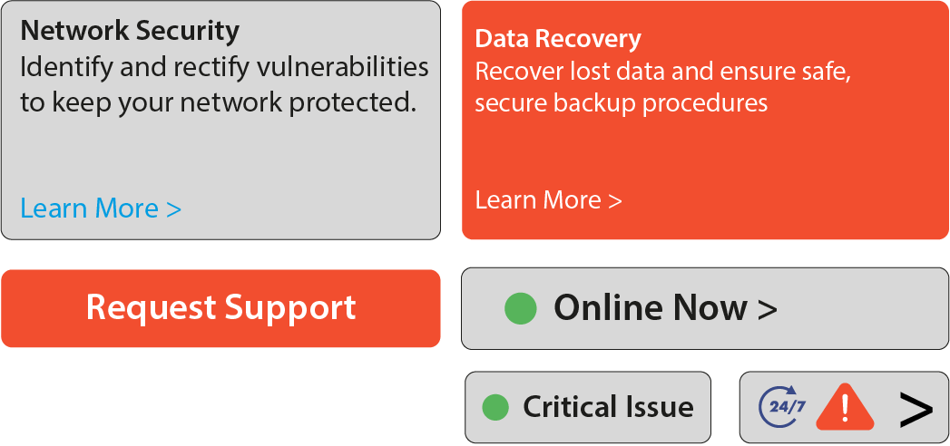Visual hierarchy and messaging emphasize fast response times and 24/7 availability to reflect the urgency of IT issues.