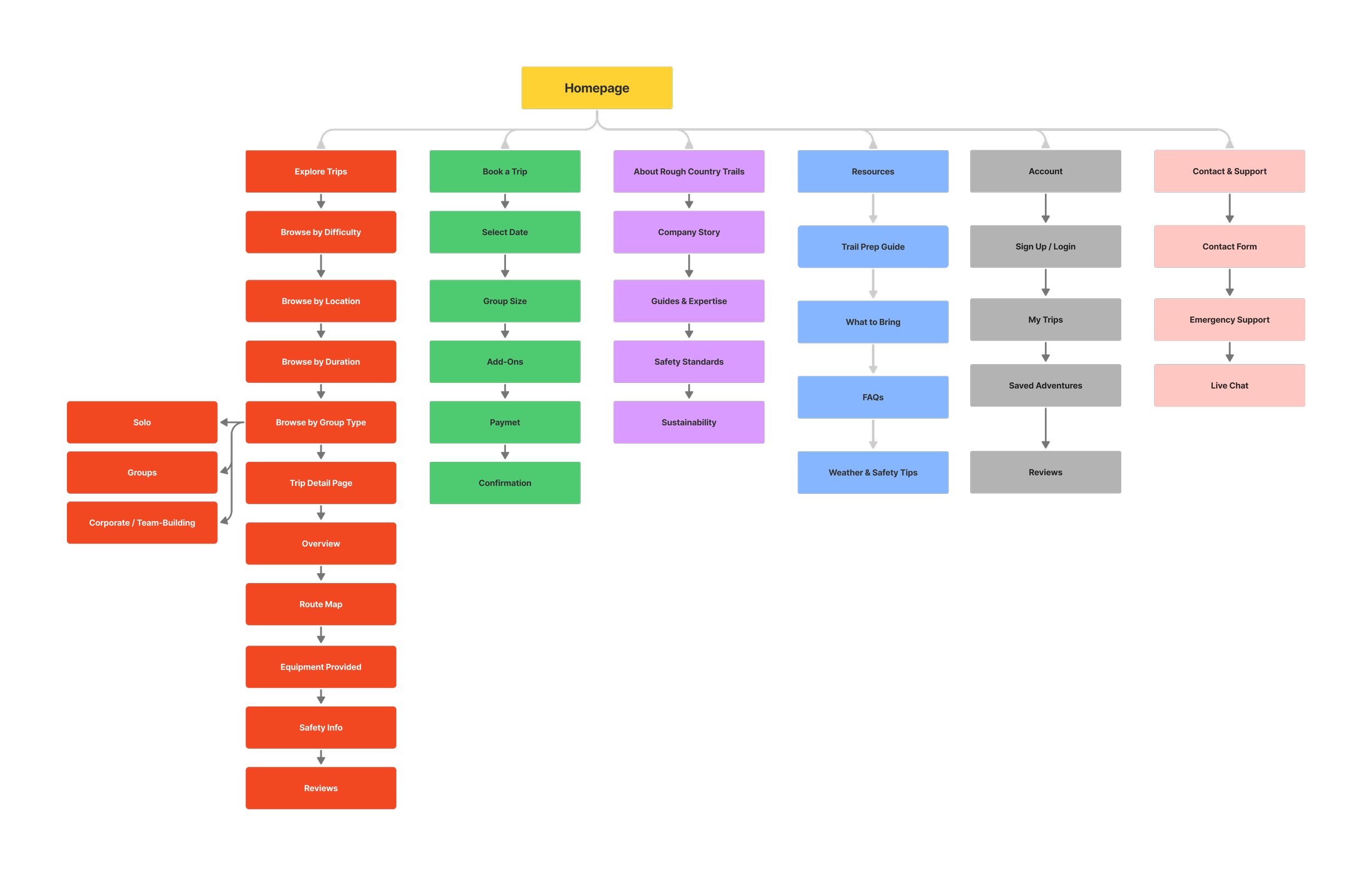 The Rough Country Trails digital experience is structured to support confident decision-making for high-effort outdoor adventures. Information is organized to surface inspiration first, followed by clear evaluation details and preparation guidance before prompting commitment.