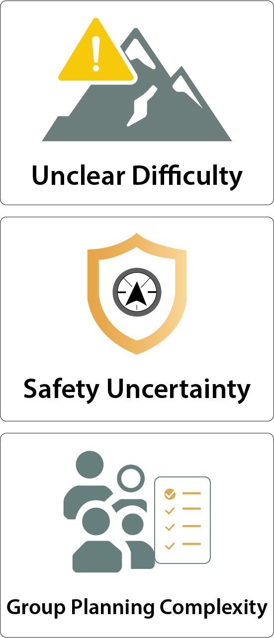 Planning a remote outdoor adventure is intimidating. Users often struggle to understand trail difficulty, required experience, safety expectations, and whether an expedition is appropriate for their skill level or group type. Existing adventure sites frequently rely on inspirational imagery without providing the structured information needed to make confident decisions.